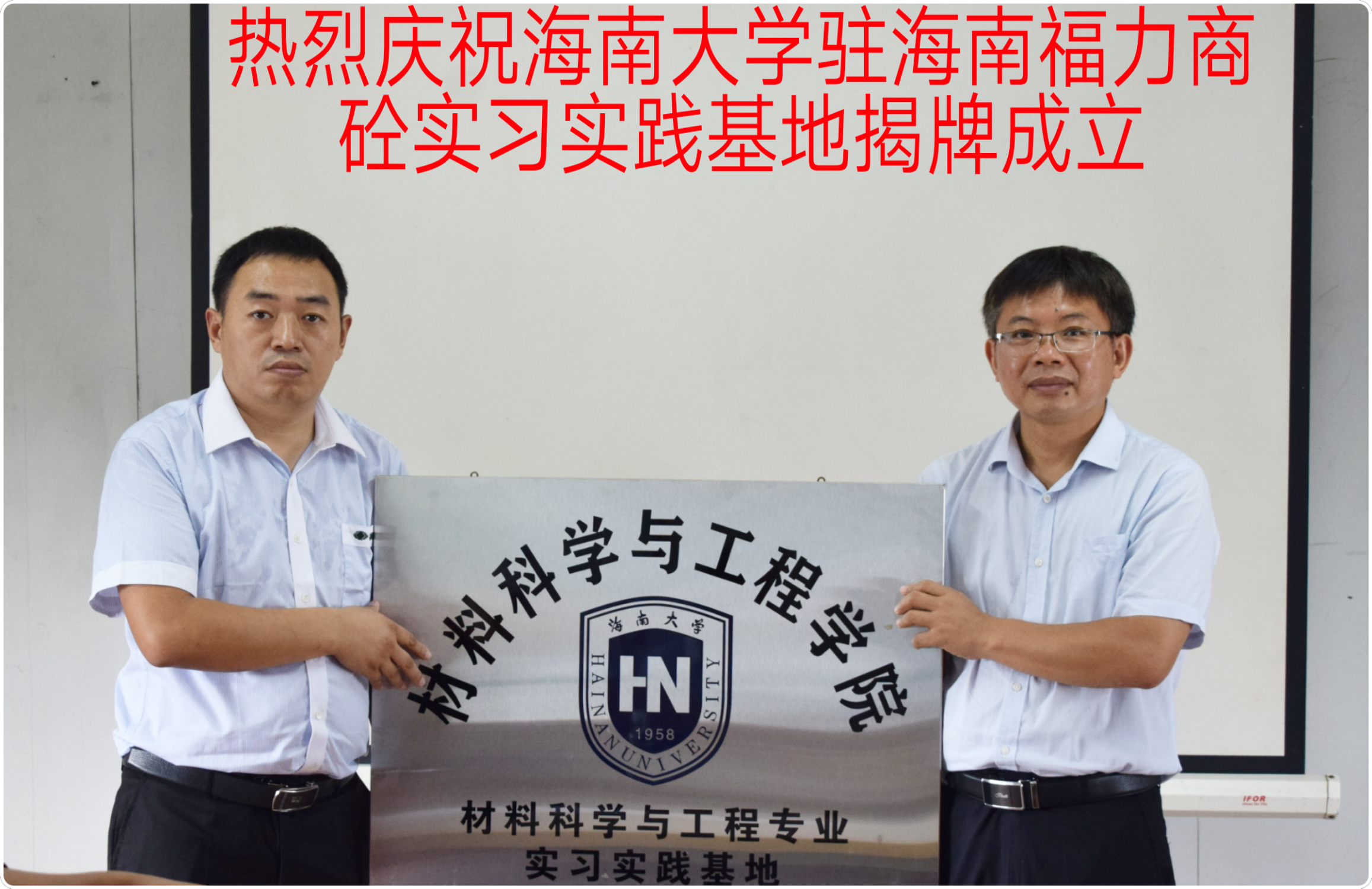 2019年6月26日下午,黑料 胡先文副书记和陈永副院长带队考察海南福力商砼和海南恒宝两家公司,亲切慰问正在公司参加实习实践的同学,并出席黑料 材料科学与工程专业在两家公司的实习实践基地揭牌仪式。学院材料系李长久主任和涂进春副主任陪同参与了两家公司的洽谈和揭牌仪式。