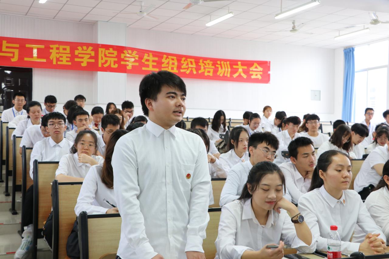 此次培训大会在共唱团歌中开始,场面庄重严肃,在共青团的领导下,我们共同成长,彰显出一名团员的优秀精神风貌,学生干部作为学生中的典范,更要为国家建设,海南自贸港建设做出应有的贡献。