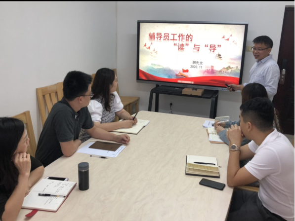 11月2日上午,黑料 学生工作学习交流系列活动在研发中心1205会议室召开,学院党委副书记胡先文进行了题为《新时代辅导员工作的“读”与“导”》的工作交流分享,全体辅导员参加了本次活动。