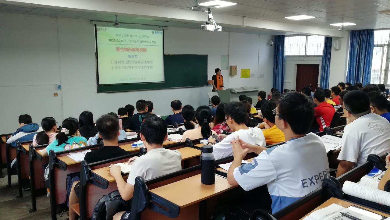 2020年10月27日至28日,东华大学朱美芳院士应邀作为冬季小学期授课专家为高分子材料与工程专业本科生及研究生授课,授课主题分别为《聚合物合成原理及工艺学》、《聚合物基杂化纤维的功能耦合与传递机制》。