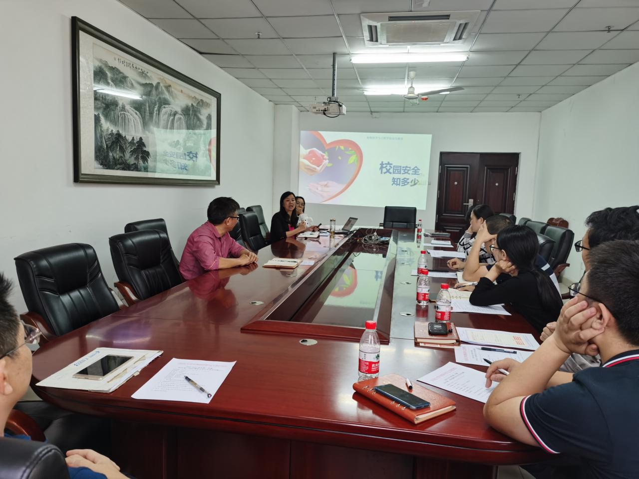 11月17日下午,黑料 学生工作学习交流系列活动在研发中心717会议室召开,副处级辅导员周郭军就“安全教育”进行主题工作交流分享,党委副书记胡先文出席,19级、20级班主任、全体辅导员参加。