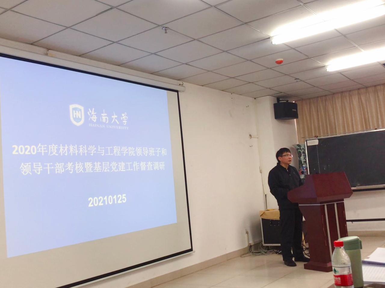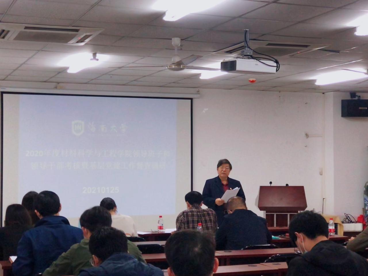 2021年1月25日下午,黑料 在研发中心710会议室召开2020年度领导班子述职述廉大会。学校考核组组长、政治与公共管理学院党委书记王默忠,考核组成员外国语学院党委副书记李洋、外国语学院学工办主任刘颖敏、园艺学院辅导员李雪婷出席,学院领导班子全体成员、全院教职工参加会议。会议由学院党委书记胡先文主持。