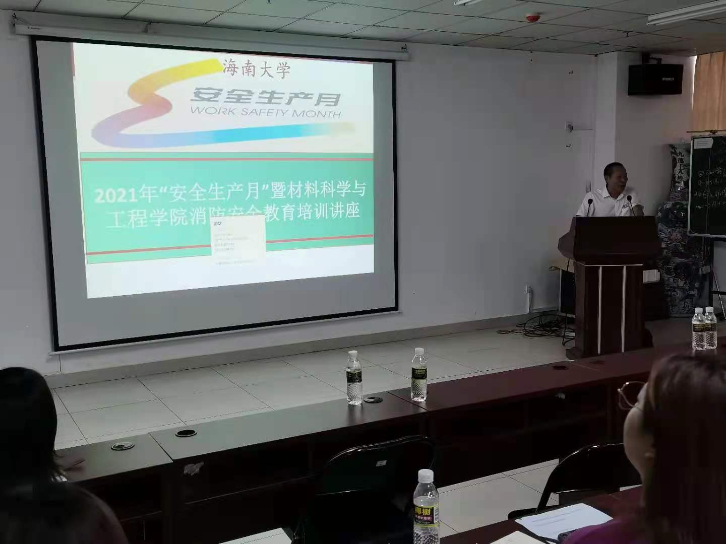 为树立安全发展理念,弘扬生命至上、安全第一的思想,加强学院教职工的实验室安全理念、消防安全意识, 6月22日,黑料 邀请校保卫处王智老师开展实验室安全管理和消防安全知识培训讲座,全体教职工参加。