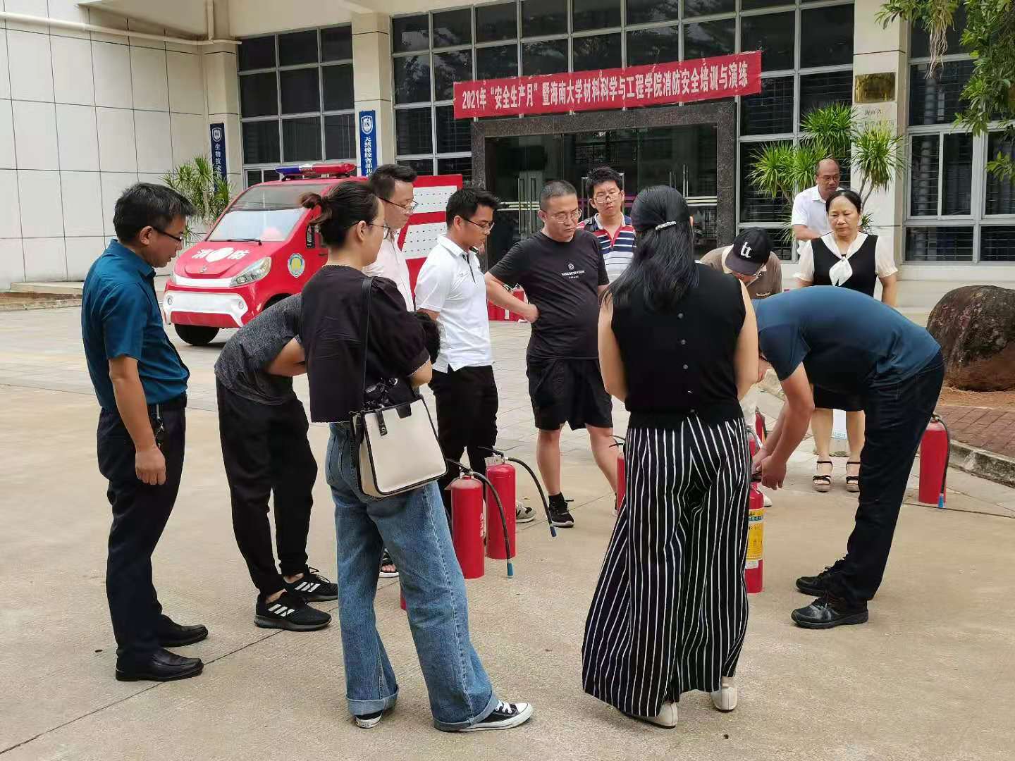最后学院组织全体职工参加了消防安全现场演练,正确使用消防安全灭火器,提高了安全防范意识。