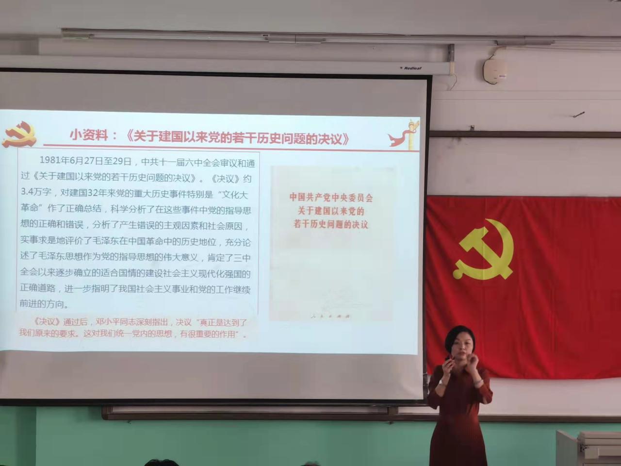 会上,秦院长指出《决议》是一篇马克思主义的纲领性文献,是新时代的政治宣言,是实现中华民族伟大复兴的行动指南,深刻学习《决议》有益于全体党员理解党的政策内涵、紧跟党走。她带领全体党员从“深刻认识党的十九届六中全会召开的内在逻辑”、“深刻把握党的十九届六中全会精神的精髓要义”和“深刻理解党的十九届六中全会精神的重大意义”三个方面展开学习。
