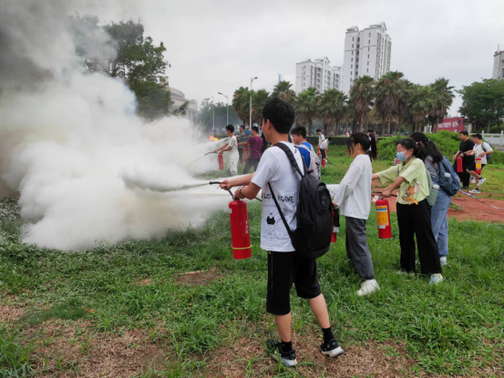 最后,王智科长和林德鑫老师带领全体师生在新南门草地进行了实地灭火演练,通过实地演练,使师生们熟练地掌握了消防器材使用及灭火操作流程,对出现火情及时应对措施有了全面的了解,取得了较好的演练效果。