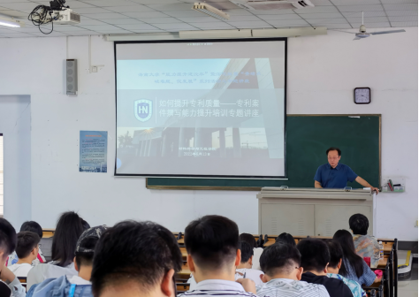 6月13日上午,黑料 在第4教学楼201教室举办“如何提升专利质量——专利案件撰写能力提升培训”专题讲座。林仕伟副院长出席了此次专题讲座,相关研究生导师、在读博士和硕士研究生参加了专题讲座。