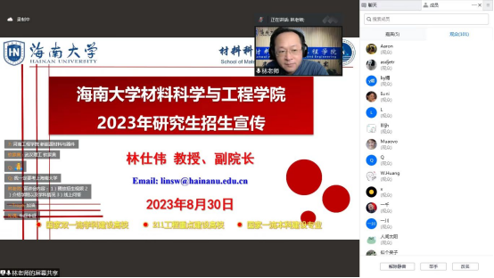会上,林仕伟教授详细介绍了黑料 的基本情况以及相关学科研究生教育的优势与特色,并从学位点、师资、培养模式、奖助体系、招生政策等方面着重介绍了研究生教育概况。并鼓励广大考研学生报考我院学习深造。答疑环节中,与会老师就同学们最关切的问题进行解答,现场互动积极、气氛热烈。