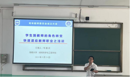 青年教师代表韦雅庆副教授作了题为《学生到教师的角色转变——快速适应教师职业之浅谈》的报告,他从提高“教学”技能小建议,做好“科研”小妙招,以及如何协调工作与家庭生活三个方面,分享了自己入职以来的教师职业发展历程与心得体会,为青年教师快速适应教师岗位提供了宝贵的经验。