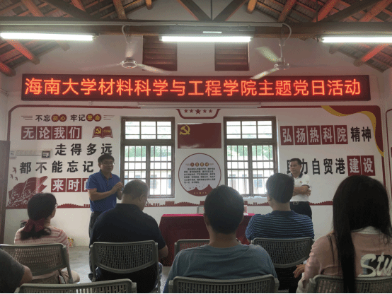 教工党员及青年教师在联昌试验站旧址集中了解了“两院”的发展历程,参观了建院之初的茅草房和食堂等旧址,并聆听了陈海青同志讲授的主题党课,追忆了何康院长等老一辈科研工作者“丹心耀南疆”的爱国奉献事迹,感悟了“海大精神”——即“丹心耀南疆”的爱国奉献精神、“草庐创伟业、荒滩筑新城”的艰苦奋斗精神和“敢闯敢试、敢为人先”的改革创新精神。并面向鲜红的党旗,重温了入党誓词。