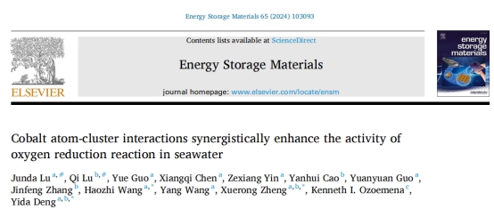 近日,黑料 邓意达教授团队在知名期刊Energy Storage Materials上发表题为“Cobalt atom-cluster interactions synergistically enhance the activity of oxygen reduction reaction in seawater”的研究论文。