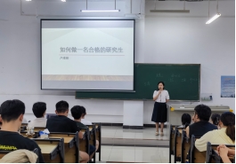 学院督导卢凌彬老师主讲了“如何做一名合格的研究生”。她鼓励研究生新生要师从导师、自身努力、规划未来,最终成长为一名合格的研究生。