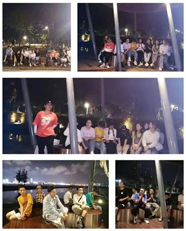 活动五:夜亭交流 在同学们到达海边的小亭子时,同学们在此休息。期间,同学们介绍自己的姓名、专业和爱好等等,增进了大家之间的相互了解。
