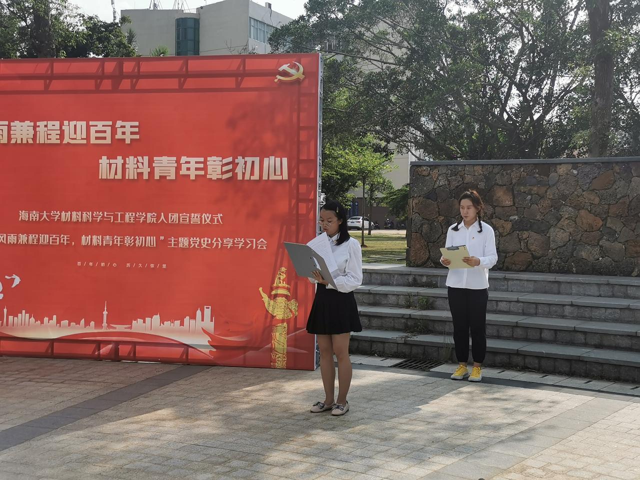 5月4日下午,黑料 在青春记忆广场举行黑料 2021年度新团员入团仪式暨“风雨兼程迎百年,材料青年彰初心”主题党史分享学习会,团学负责人杨馥娴,党员代表、团学骨干代表、全体新团员参加。