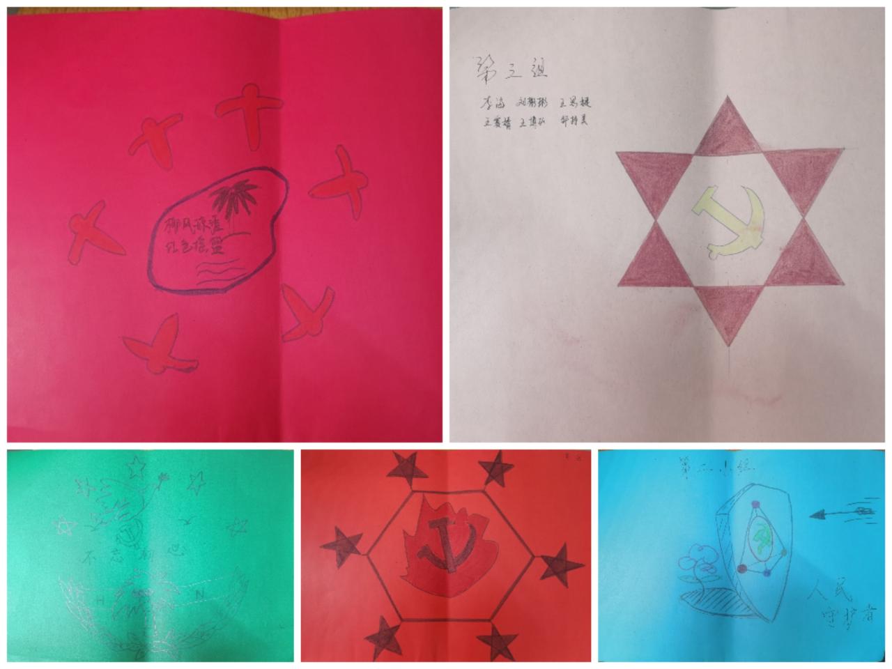 最后,为增进各小组成员的感情,提高学员们参与党课的积极性,各小组进行了小组创作——20分钟内创作出小组的组徽。在这20分钟里,各小组成员充分讨论、齐心协力交出了各自有着独特含义的作品。