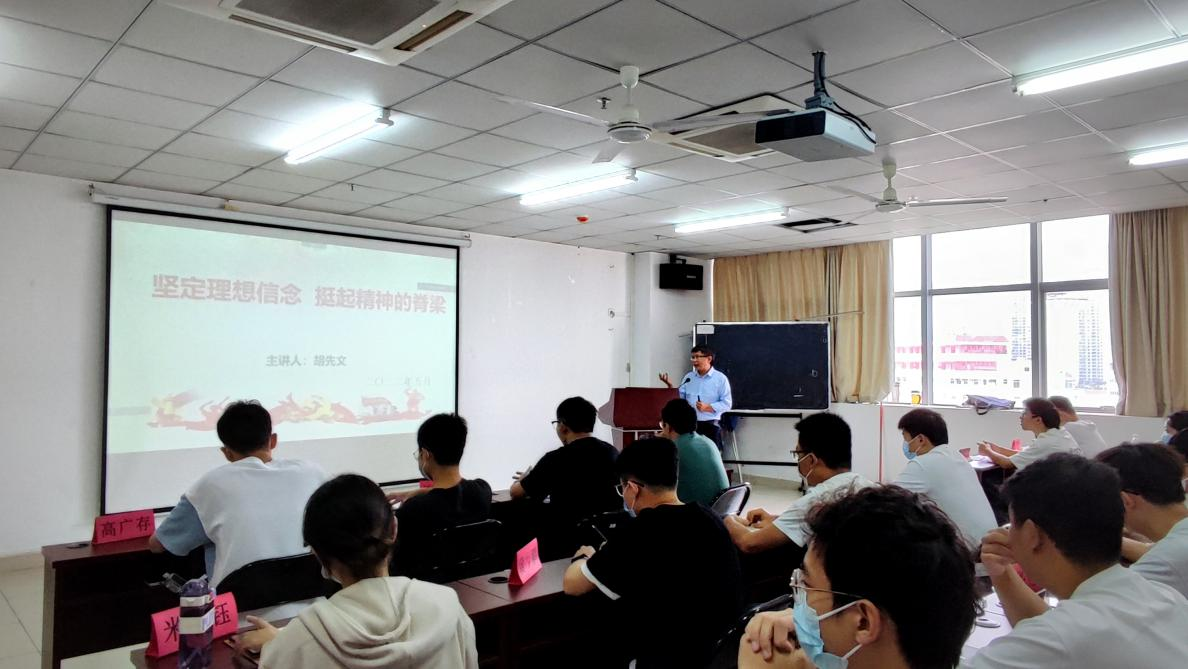 为进一步开展对发展对象的政治素质教育,提升爱国主义情怀,持续加强预备党员思想政治建设,2022年5月8日下午,黑料 党校(黑料 分党校)在研发楼710组织开展2022年春季第二次线下党课,党委书记胡先文担任主讲人,为全体发展对象进行“坚定理想信念,挺起精神的脊梁”专题党课培训。