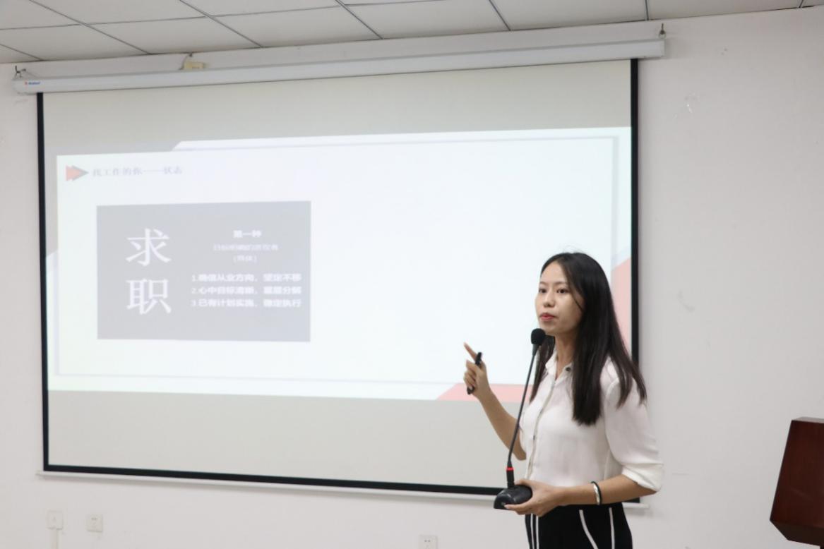 在本次宣讲会中,海南易点通教育咨询有限公司宣讲人首先从“工作这件事”入手,为大家阐明了工作对于大学生的意义。接着,宣讲人进行宣讲的第二部分内容——“找工作的你”。其中,宣讲人对求职者进行了分类并分析了目前的就业形势,帮助同学们明确了求职的方向。